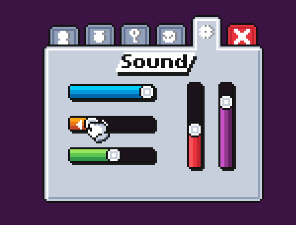 Buttons, Icons, Sliders, Tabs, Cursors, Pop-ups and Text Boxes are all avaiable in this pack! And it will be updated over time to include even more features.